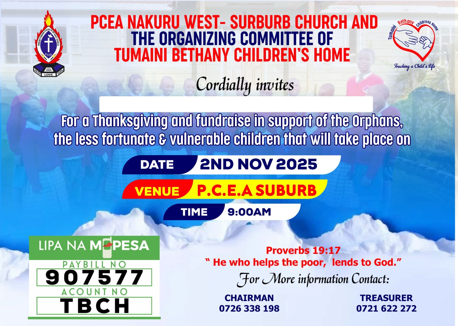 Join us on November 2nd for our Thanksgiving & Fundraising Service — every gift brings hope and a brighter tomorrow for our children.